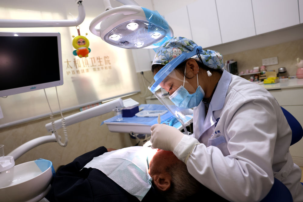 2026年4月16日,在四川省眉山市东坡区太和镇卫生院,口腔科医生给患者治疗。新华社发(姚永亮摄)