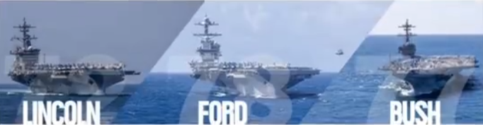 美军称数十年来首次三艘航母同时部署中东