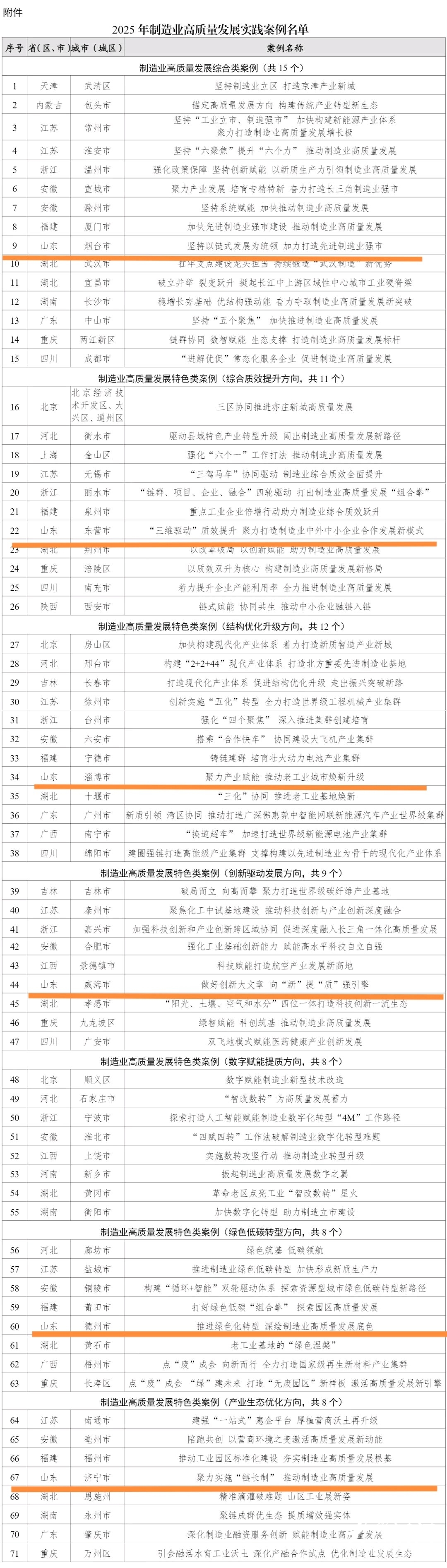 记者从工信部网站了解到,经申报推荐、形式审查、专家评审、征求意见、公示拟入选名单等,2025年制造业高质量发展实践案例名单出炉,全国共有71个案例上榜,其中山东有6个案例入选。