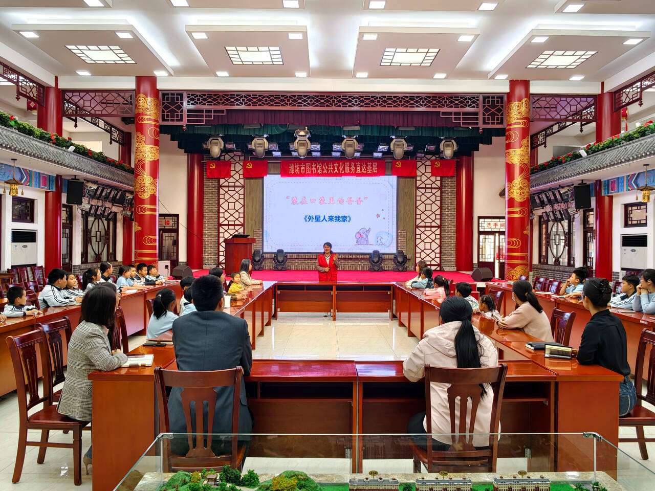 活动现场,市图书馆工作人员化身“阅读引路人”,以《外星人来我家》为切入点,借助PPT授课,带领青少年及家长开启趣味阅读之旅。授课中,工作人员用亲切的语言解读故事、激发孩子阅读兴趣,同时与亲子互动,分享阅读技巧,引导孩子养成良好阅读习惯,帮助家长掌握科学陪伴方法,实现“亲子共读、双向成长”。