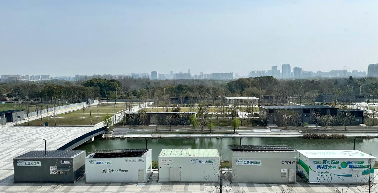 在上海农业科创谷的一片空地上,四个50平方米的“集装箱”里别有洞天——立体排布的一颗颗草莓植株在全人工光的环境中茁壮生长,有的已经结出鲜红或粉嫩的成熟果实。这是在第五届“多多农研科技大赛”的决赛现场,四支由高校、科研机构及农业科技企业组成的参赛团队“手搓”出来的草莓植物工厂。未来六个月,各团队将带着AI“绝活”展开终极对决,挑战国产草莓的高产、优质与低能耗栽培。