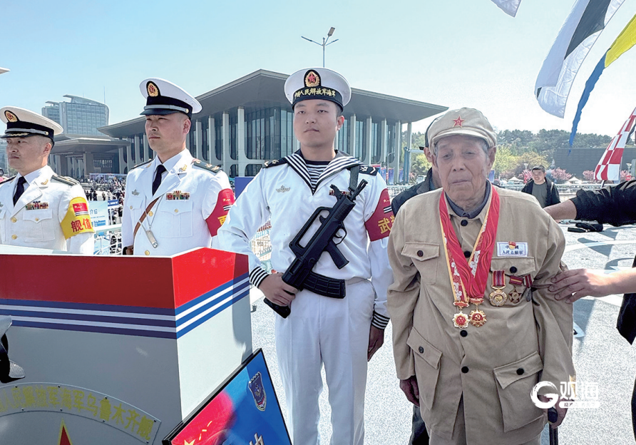 青岛舰艇开放活动中,抗美援朝老兵隋宝亮登舰参观圆梦“深蓝”