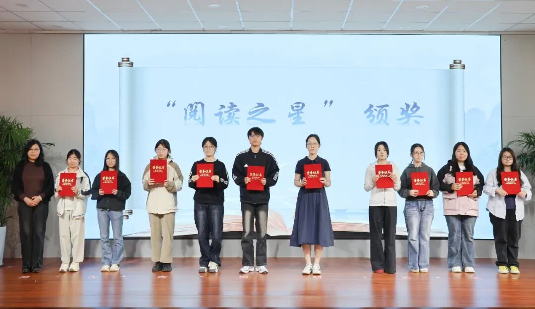 学生工作处处长王晓玉、图书馆馆长朱瑞雪为上年度校园“阅读之星”“书香班级”颁奖,以先进典型带动更多师生参与阅读。