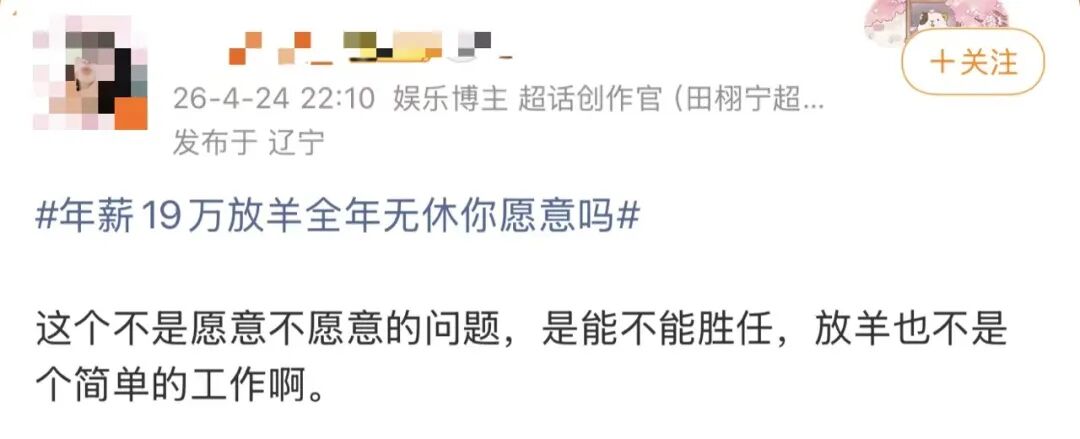 4月24日,话题“牧场月薪1万6找人放3千只羊 全年无休”,登上平台热搜第一。