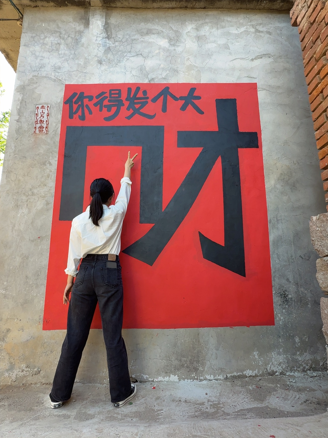 在济南长清区五峰山街道邱庄村的一面老墙上,新添了一行俏皮话:“你得发个大财”,红底黑字,引得路人忍不住停下脚步。