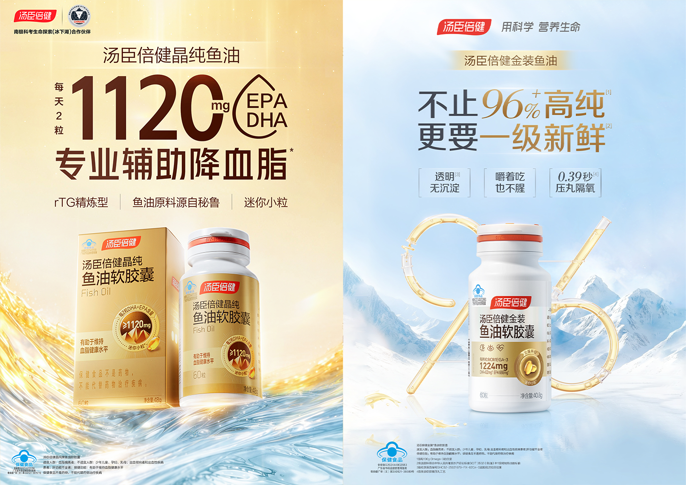 此外,源于消费者对心脑血管养护的健康需求,汤臣倍健鱼油品类备受青睐,主打“高含量EPA+DHA”的晶纯鱼油不仅复购率保持高位且品类新客高达86.5%,有力促进汤臣倍健药店渠道鱼油品类份额的攀升;线上款的金装鱼油延续强劲表现,今年一季度在天猫平台非跨境品深海鱼油类目中,每月的销售额均位列第一。稳定的市场表现印证了消费者对汤臣倍健产品品质的认可和信任。