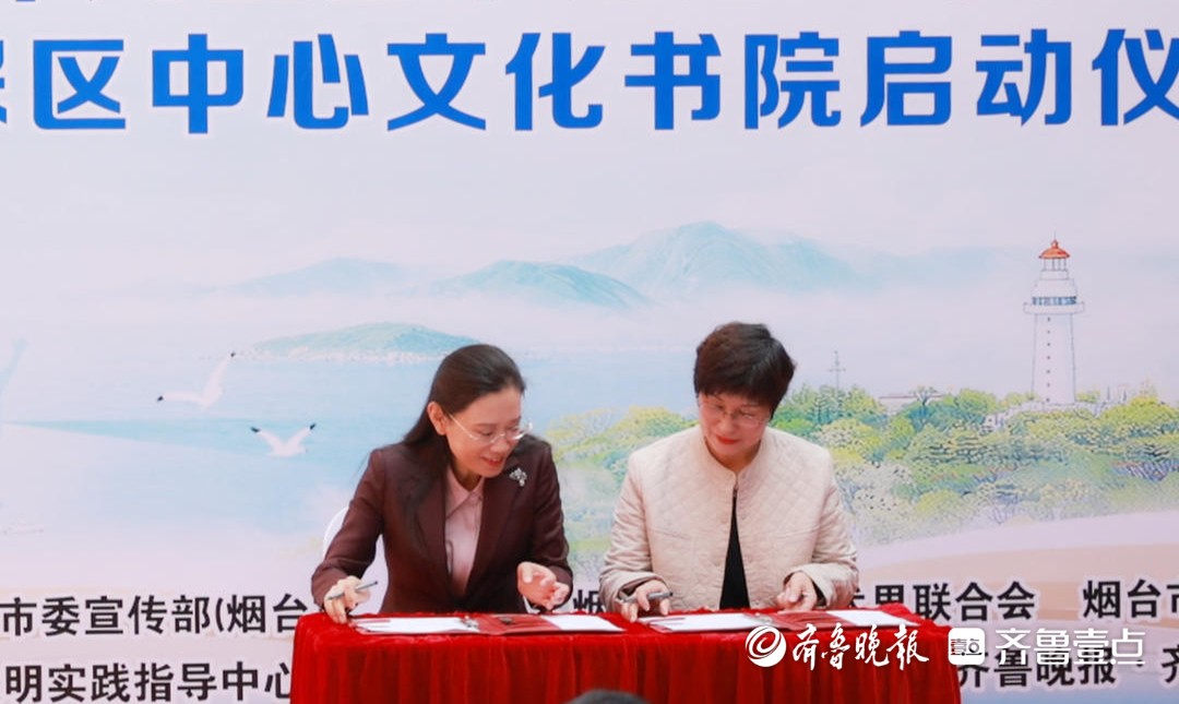 活动现场,芝罘区与烟台图书馆签约,正式启动芝罘区中心文化书院建设。