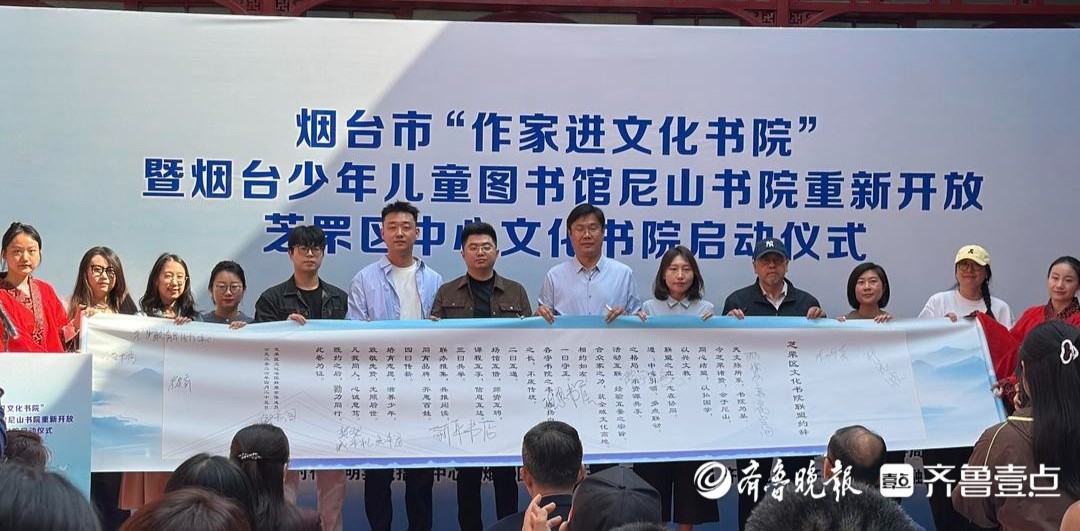 4月25日上午,烟台市“作家进文化书院”暨烟台少年儿童图书馆尼山书院重新开放、芝罘区中心文化书院启动仪式举行。