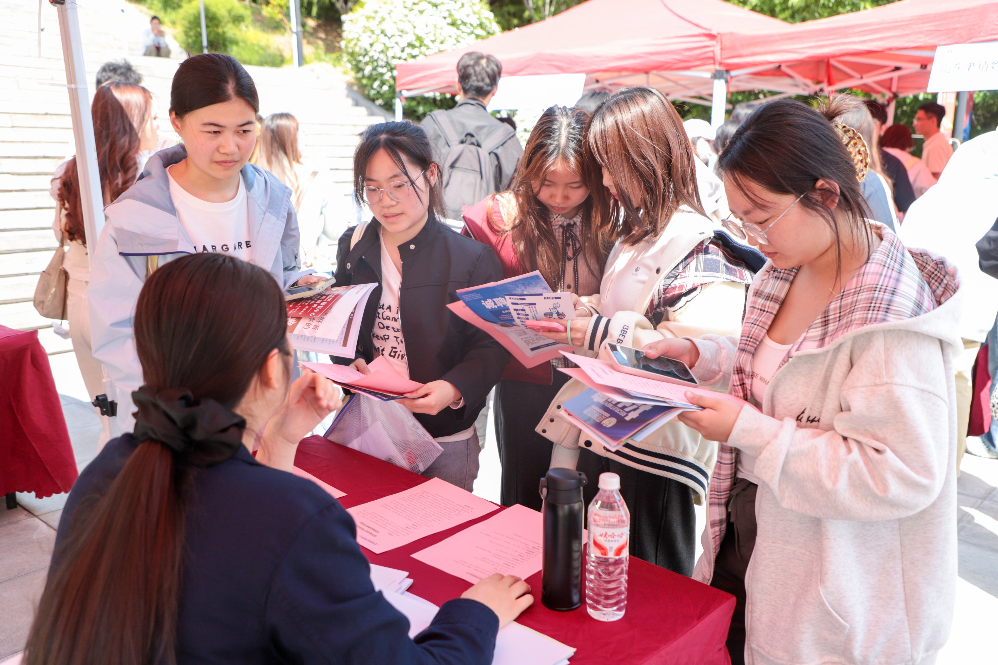 招聘会现场气氛热烈,人头攒动。各用人单位展位前咨询的毕业生络绎不绝,企业人事代表热情介绍岗位职责、成长通道与薪酬待遇,耐心解答学子疑问。毕业生们穿梭于展位之间,主动沟通、积极投递简历,展现了潍护学子昂扬向上的精神风貌。
