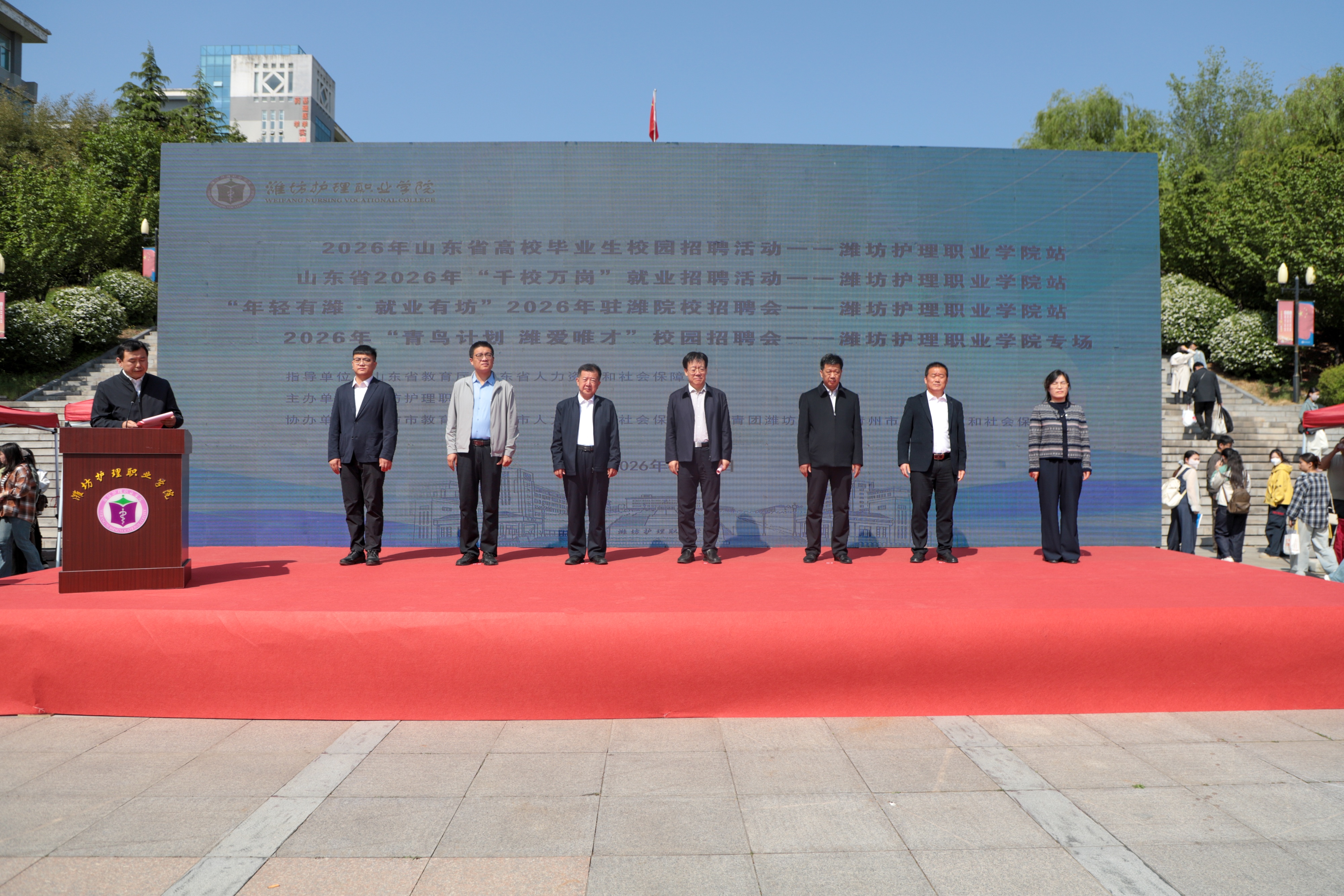 随后,与会领导与嘉宾共同为本次校园招聘会启幕,标志着潍坊护理职业学院2026年校园招聘活动正式开始。