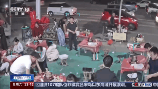 夜市摊主 赵国振:当时客人大概有40桌,突然就刮起了一阵大风。当时风比较大,也比较猛。由于当时是星期天,老人和小孩比较多,加上之前天气比较好,大部分人还是骑电动车来的。顾虑到孩子和老人的安全,我就选择拿起喇叭大喊不要结账,抓紧时间撤退,赶紧回家,保证人身安全。