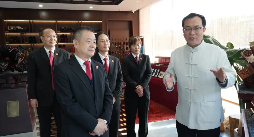 当天下午,滕州法院干警先后到山东山森数控技术有限公司和圣匠鲁班文创旗舰店开展走访调研,主动了解企业司法需求,提供精准法律指导。