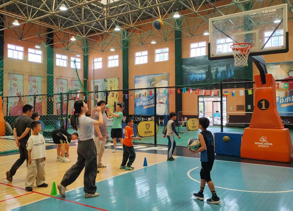 亲子篮球闯关赛则将趣味性与挑战性完美结合。关卡设置了运球过障碍、投篮得分等环节,需要家长与孩子携手完成。在运球过程中,家长们耐心指导孩子控制球的方向和速度;投篮时,又鼓励孩子勇敢尝试,给予他们信心。孩子们在闯关过程中,不仅锻炼了篮球技巧,还培养了勇敢面对困难的精神。现场几位小朋友兴奋地说:“和爸爸妈妈一起闯关,虽然有点难,但我们成功了,太开心了!