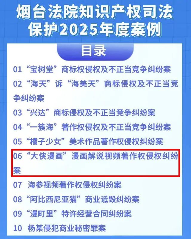 4月23日,招远法院审理的“大侠漫画”漫画解说视频著作权侵权纠纷案,成功入选“烟台法院知识产权司法保护2025年度案例”,为区域知识产权司法保护工作注入源源不断的司法动能。