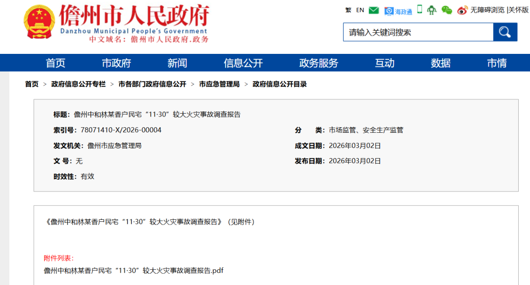 2025年11月30日0时10分许,儋州市中和镇解放街一民宅发生一起较大火灾事故,过火面积约92平方米,造成3人死亡。