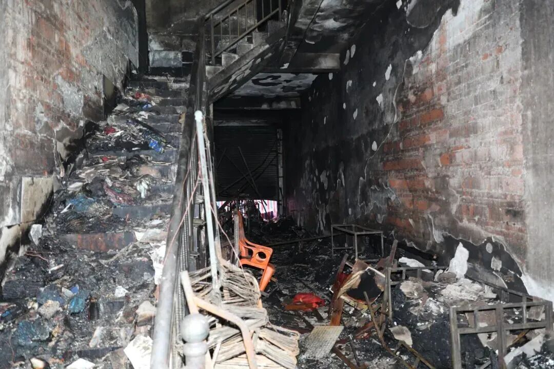 起火建筑一层为成衣、百货零售,二层以上住人。一层起火部位存放了杂物、衣物等,火灾荷载较大,燃烧速度快,短时间内火灾产生大量高温有毒烟气,且经营区域与生活区域未进行防火分隔,导致烟气竖向迅速蔓延。