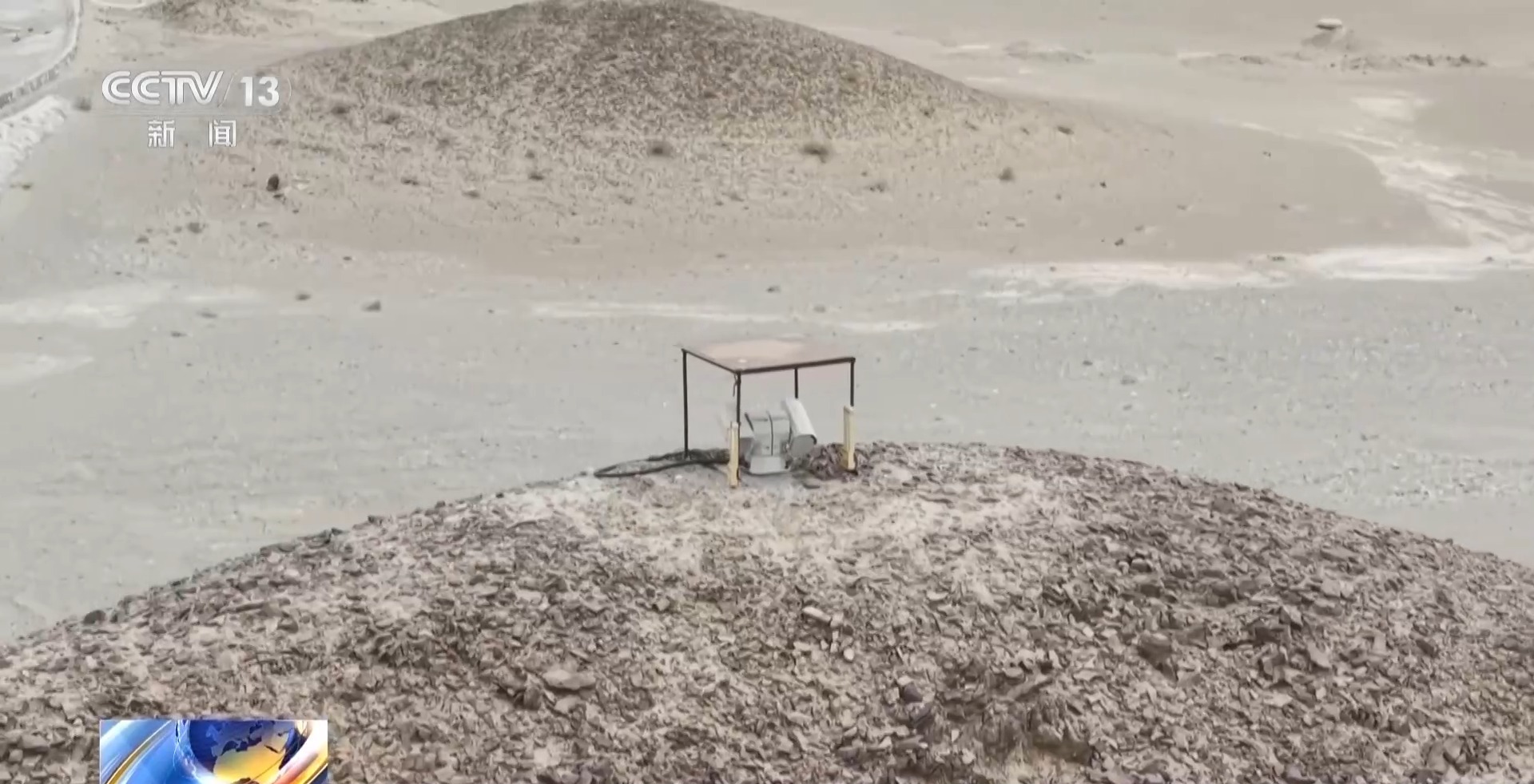 总台记者 柴世文:保护区的小蓄水池,这是周边野生动物经常活跃的一个区域。蓄水池边上有一株合头草,春天了泛起新绿,而且每一个枝叶都非常清晰。大家可能觉得,这个镜头是由我们的摄像机拍摄的,其实不然,在蓄水池远处的山上架着一个球机,小到一株草,大到整个环境,都能够拍得非常清楚,而且球机的信号通过无线网络可以实时回传,它的操控我通过一个手机就可以实现。