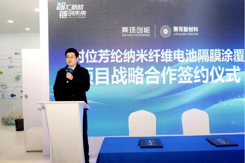 仪式上,王莉表示,聚芳新材料专注于对位芳纶纳米纤维、对位芳纶纸、芳纶粉等高性能材料的研发与产业化,持续深耕芳纶材料高端应用场景。本次与秦扬创能携手,将充分发挥芳纶纳米纤维的材料优势,推动其在锂电池隔膜领域的规模化应用,为新能源安全提供更可靠的材料支撑。