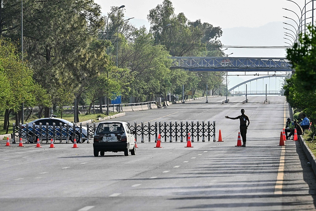 △当地时间4月25日,巴基斯坦伊斯兰堡,一名安全人员在红区封闭道路处疏导交通巴基斯坦官方消息人士25日表示,与第一轮谈判相比,伊朗采取了更为强硬的立场,强调任何结束战争的方案都必须按照伊朗方面的条件执行,而不是按照美国总统特朗普提出的条件执行。