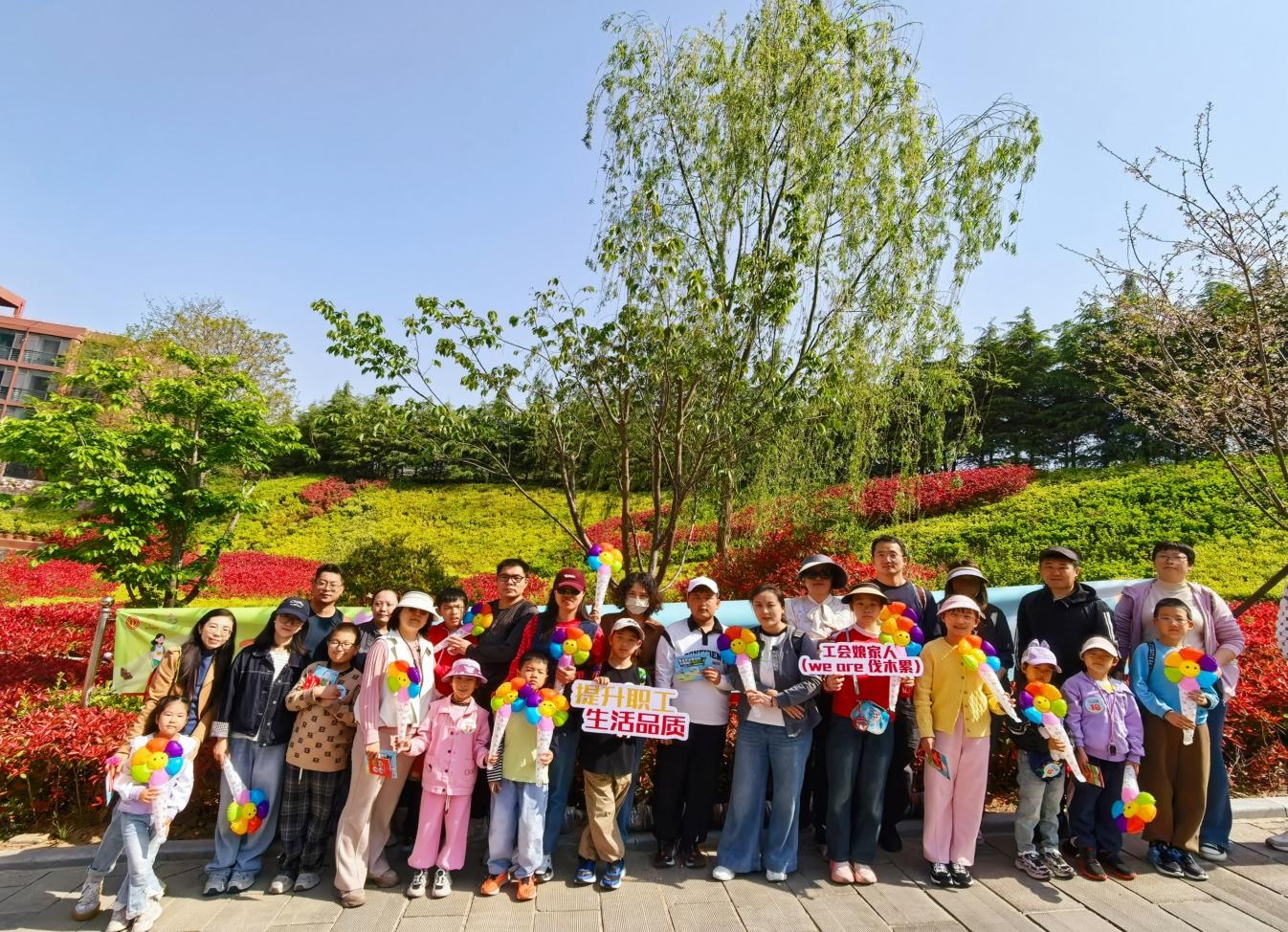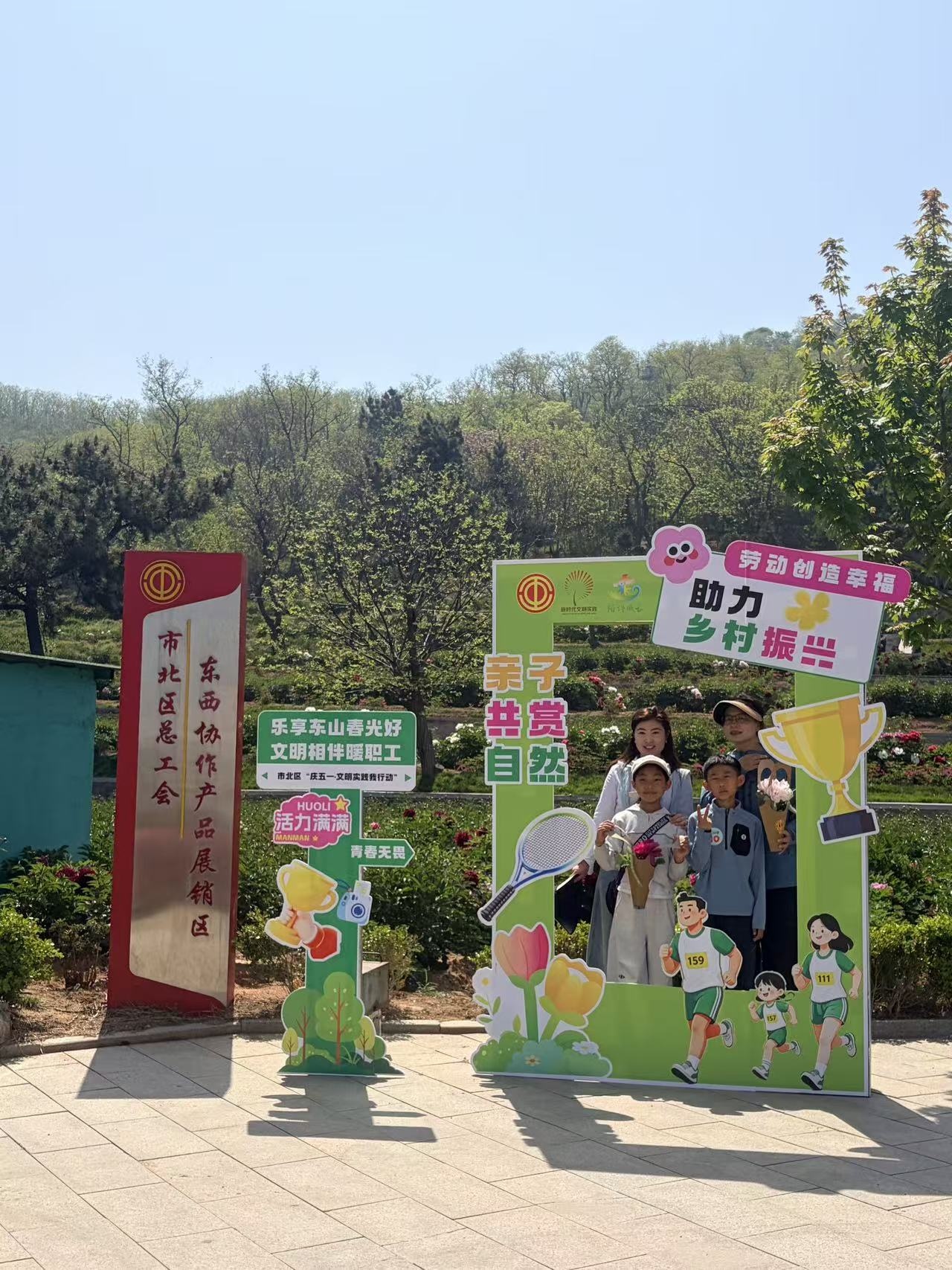 春风拂绿东山,笑语温暖市北。4月25日,由青岛市市北区精神文明建设办公室、市北区总工会联合主办的“乐享东山春光好 文明相伴暖职工”市北区“庆五一·文明实践我行动”职工亲子嘉年华活动在市北区总工会户外拓展中心欢乐举行。活动吸引来自全区50组职工家庭、120余人参与,通过登山答题、亲子游戏、花间留影等环节,共同开启一场融合文明风尚、陪伴成长与观摩东西部协作成果的春日之约。