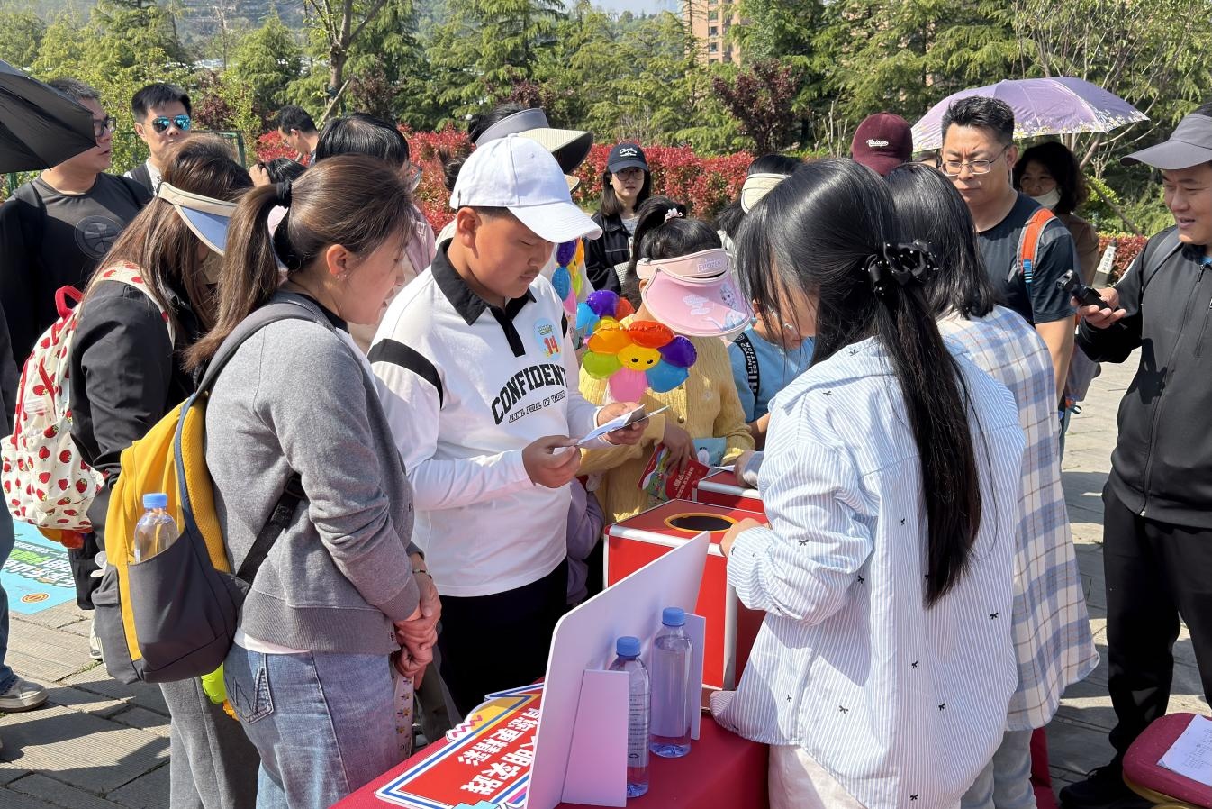 上午9点半,职工家庭手持“职工亲子嘉年华”手绘地图列队出发。沿途,“新时代文明风尚答题点”前围满了踊跃竞答的孩子和家长。“文明上网应该怎么做?”面对随机抽取的题目,孩子们争相抢答,家长则在旁补充。一位爸爸笑着说:“平时工作忙,没时间陪孩子,今天一边爬山一边答题,孩子比我记得还熟!”登顶后,大家又投入到“投环问彩——工会知识我知道”游戏中,套中圆环、答对工运知识,从工运史到职工权益保障,从构建和谐劳动关系到职工维权知识,家长们在游戏中重温了工会的温暖关怀。