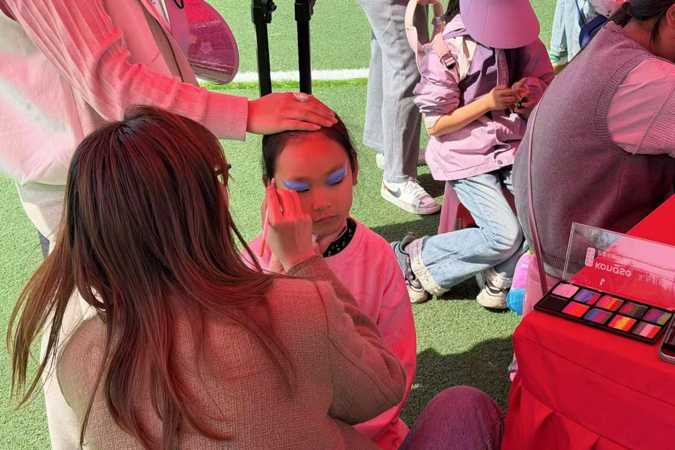 在山顶足球场里,三项亲子游戏将嘉年华活动推向高潮。“工心相连”游戏中,家庭成员手持U型槽拼接“轨道”,将乒乓球小心翼翼运至终点,成功后齐声喊出“致敬劳动者 工会在身边”,引来阵阵掌声。“壶聚匠心”游戏区域前,孩子聚精会神投箭入壶,家长则回答劳模精神、工匠精神的内涵,配合默契。而在“飞盘12宫格”游戏中,家庭成员轮番投掷飞盘,击中印有社会主义核心价值观内容的装置,然后背诵其中内容,不少孩子一口气背对12个词,赢得满场喝彩。场内还设有面部彩绘区,来自市北区教体局美术教研组的老师们为孩子们在脸颊画上漂亮的花朵、爱心,让笑容更灿烂。青岛山姆零食试吃和会籍办理摊位,一站式解锁美味与欢乐双重体验。