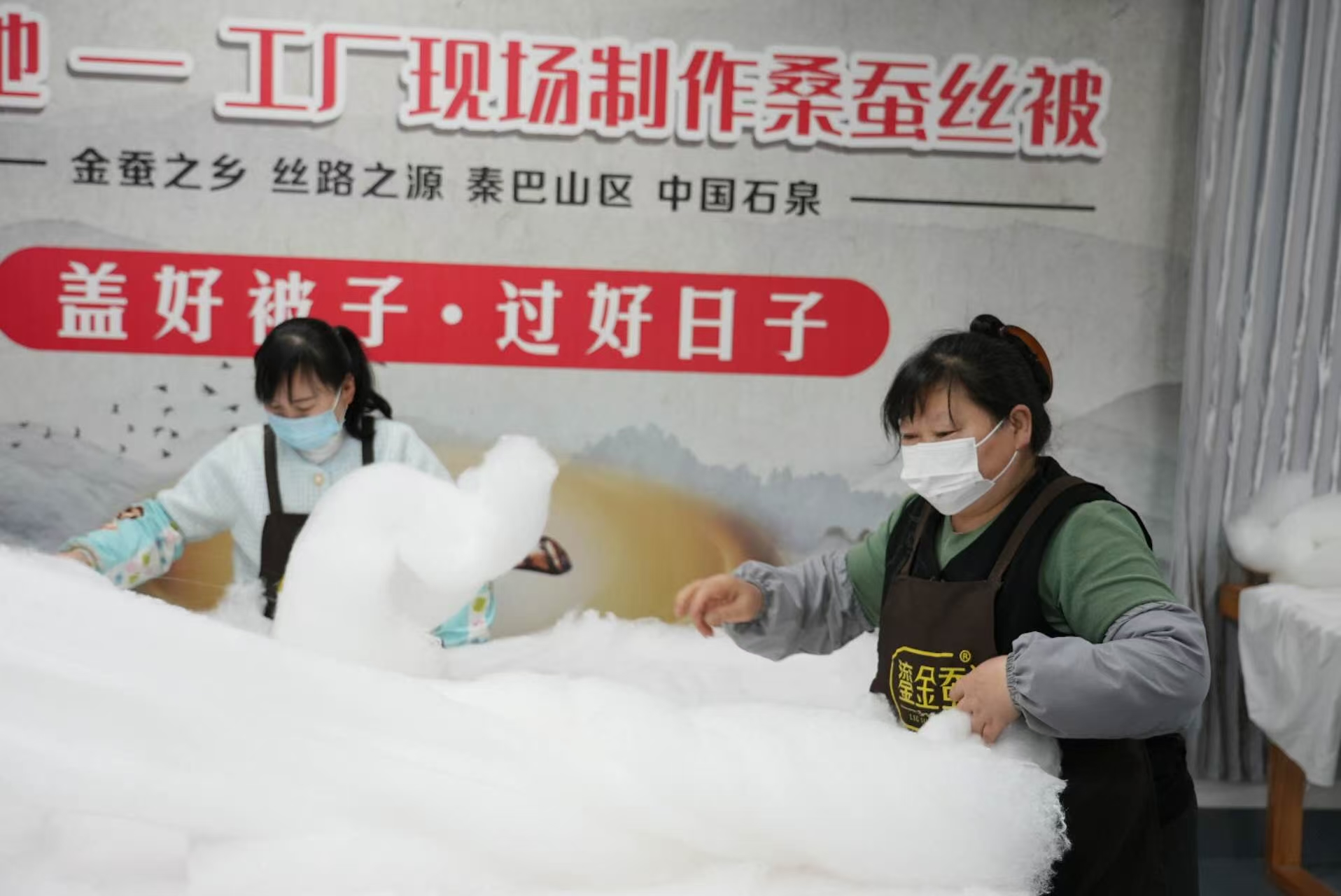 “目前我们公司拥有年产5万床蚕丝被的家纺生产线,在安康市内有三家门店专营门店销售,年销售可达500万元左右。”陕西天成丝业有限公司副总经理孙浩勇表示,企业与周边千余户养蚕农户签订收购合同,助力农民增收致富。