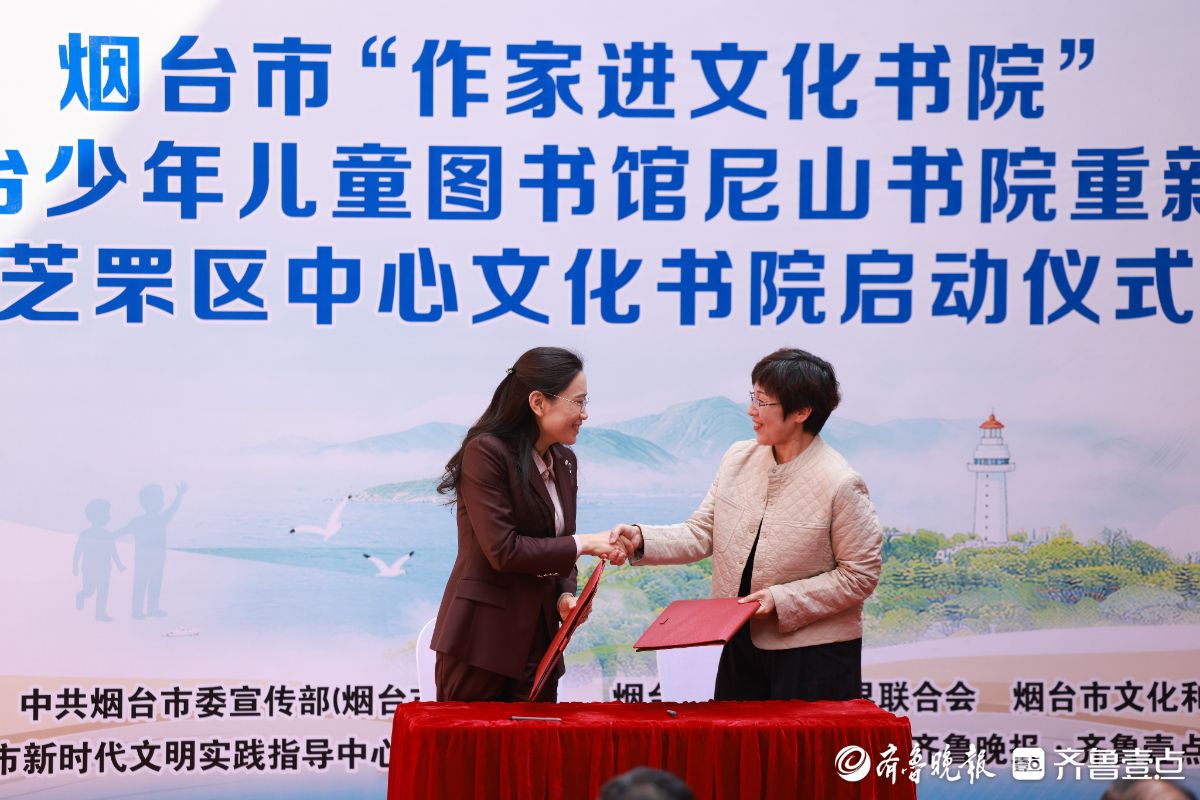 活动现场,芝罘区与烟台图书馆签约,正式启动芝罘区中心文化书院建设。