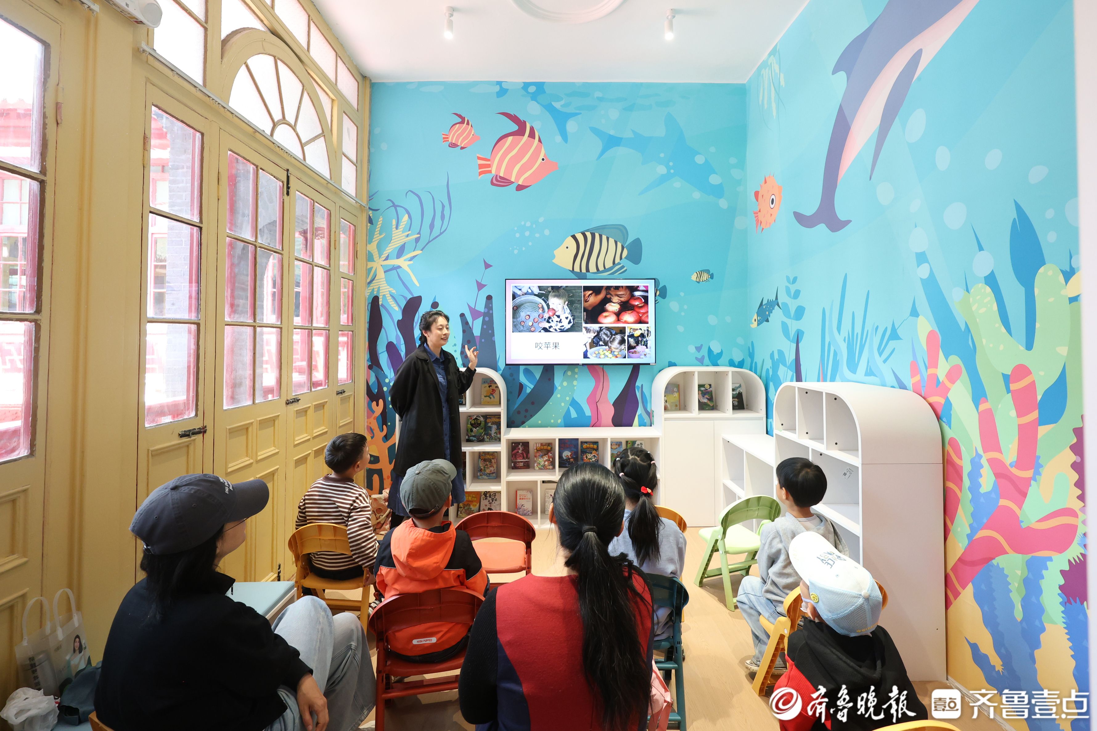 烟台少年儿童图书馆尼山书院重新开放,增强了互动体验和氛围感设计。