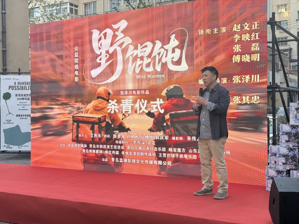 4月25日,备受关注的公益电影《野馄饨》在青岛无棣二路举行杀青仪式,电影主题曲同步发布。这部由旅美导演张泽川执导、全程在青岛取景拍摄的现实主义公益电影,将于年内与全国观众见面。杀青现场,剧组特意送来了热气腾腾的“野馄饨”,让大家大饱口福。