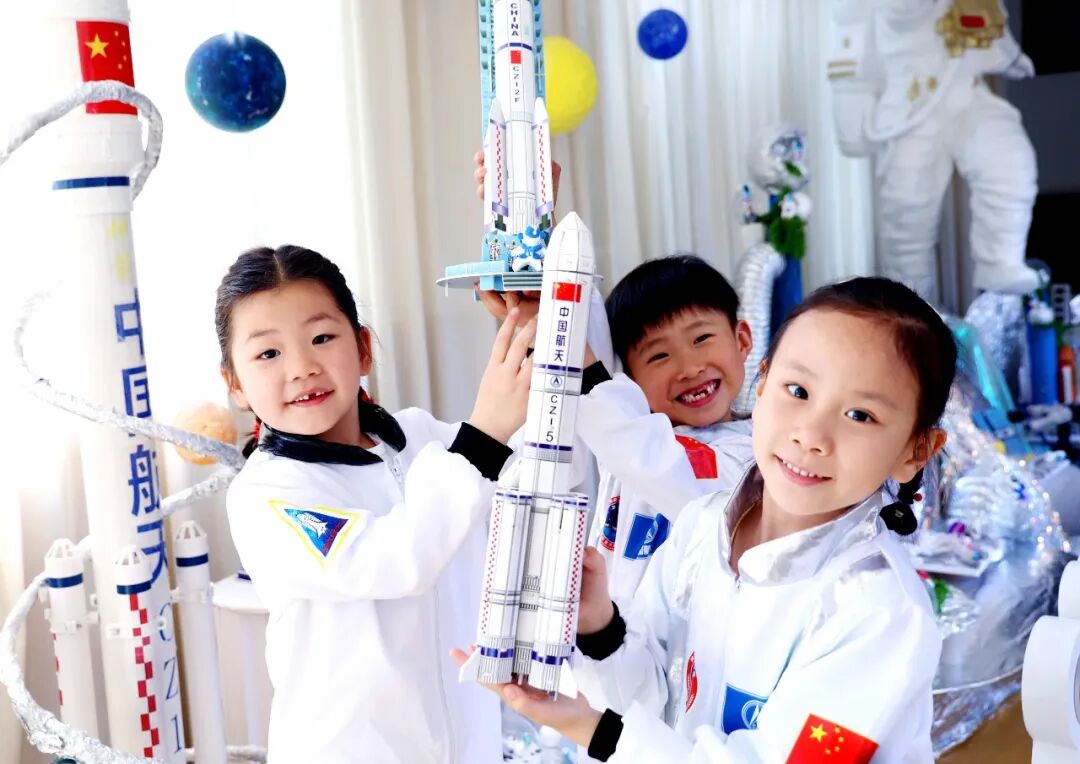 4月20日,浙江杭州市丁信幼儿园开展以“逐梦航天 童心向未来”为主题的航天节活动。周方玲摄