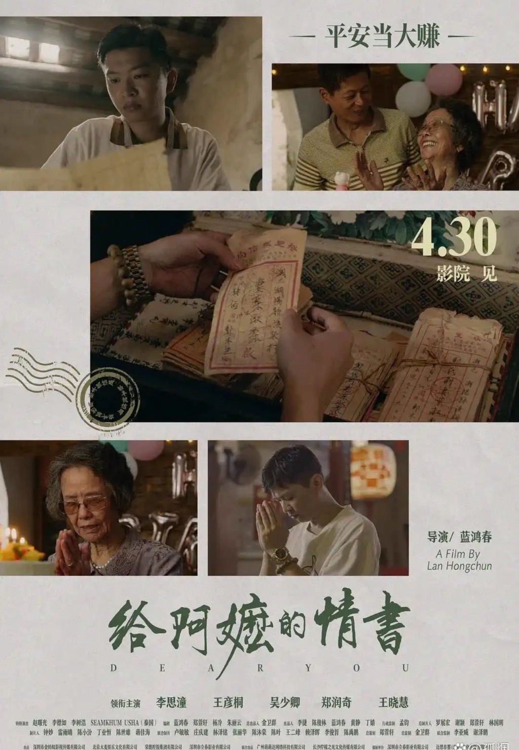 温情影片《给阿嬷的情书》由蓝鸿春执导,郑润奇、李思潼等主演,以侨批为核心线索,讲述孙子晓伟拿着阿嬷珍藏的一封旧“侨批”远赴泰国,寻找失联40年的阿公的故事。影片将潮汕阿嬷叶淑柔半生守候书信往来的往事与“下南洋”的集体记忆相融合,串联起两代人的守望与坚守。该片90%细节源自真实华侨故事,大部分案例皆有原型,目前正在全国火热提前点映中。