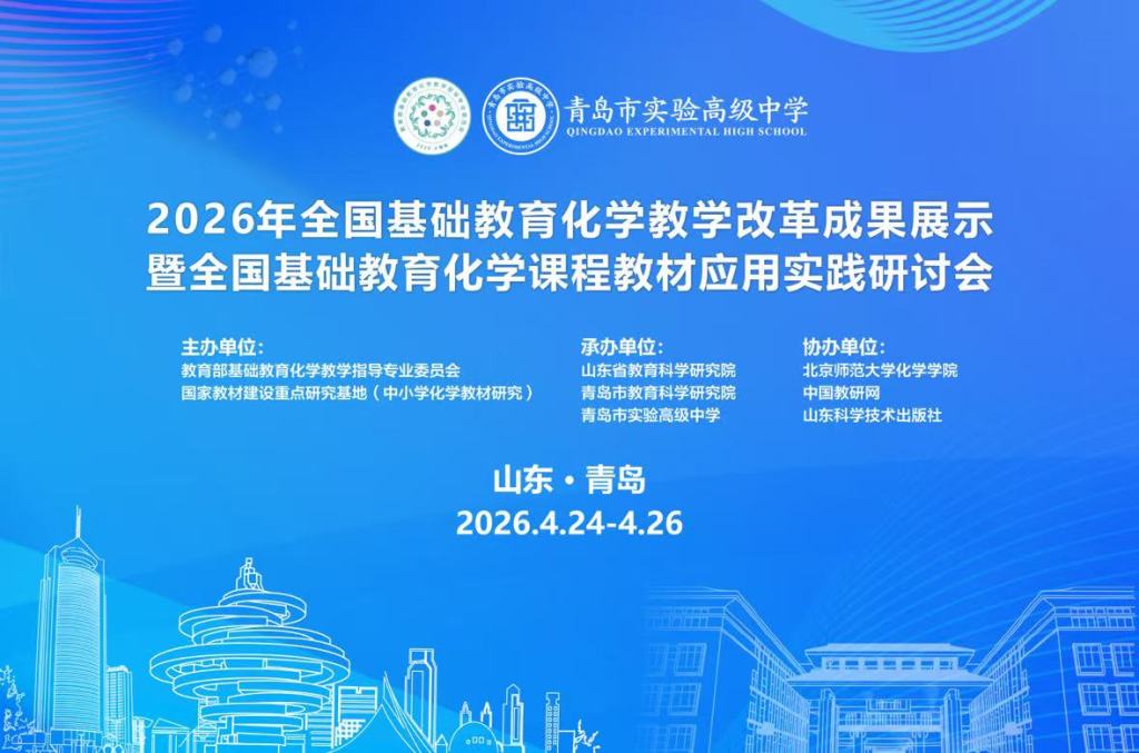 春风送暖,海韵书香;群贤毕至,共话新篇。2026年4月25日-26日,备受全国基础教育化学教育界关注的2026年全国基础教育化学教学改革成果展示暨全国基础教育化学课程教材应用实践研讨会,在山东省青岛市实验高级中学隆重举行。