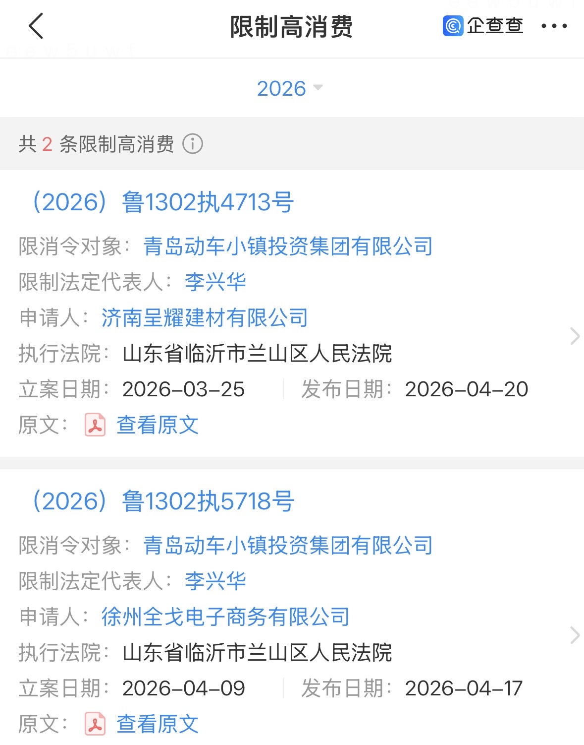 4月9日,临沂市兰山区人民法院对李兴华发出“限制消费令”。企查查信息显示,李兴华2026年共新增3条“限高”信息。