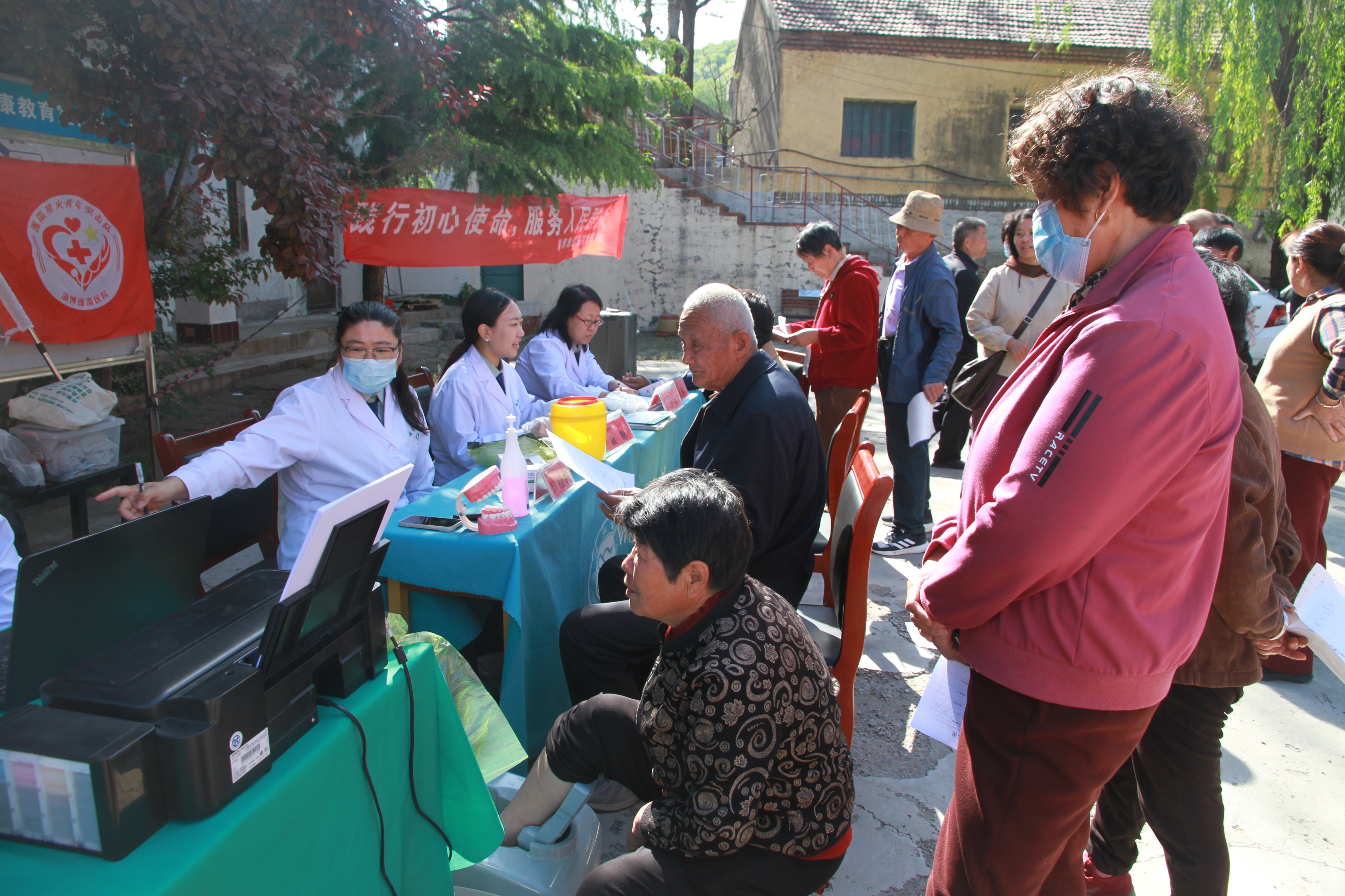 义诊正式开始,现场逐渐热闹起来。村民们有序地排队等候,脸上洋溢着对健康的渴望。医生们则坐在桌前,耐心地为每一位村民进行检查。