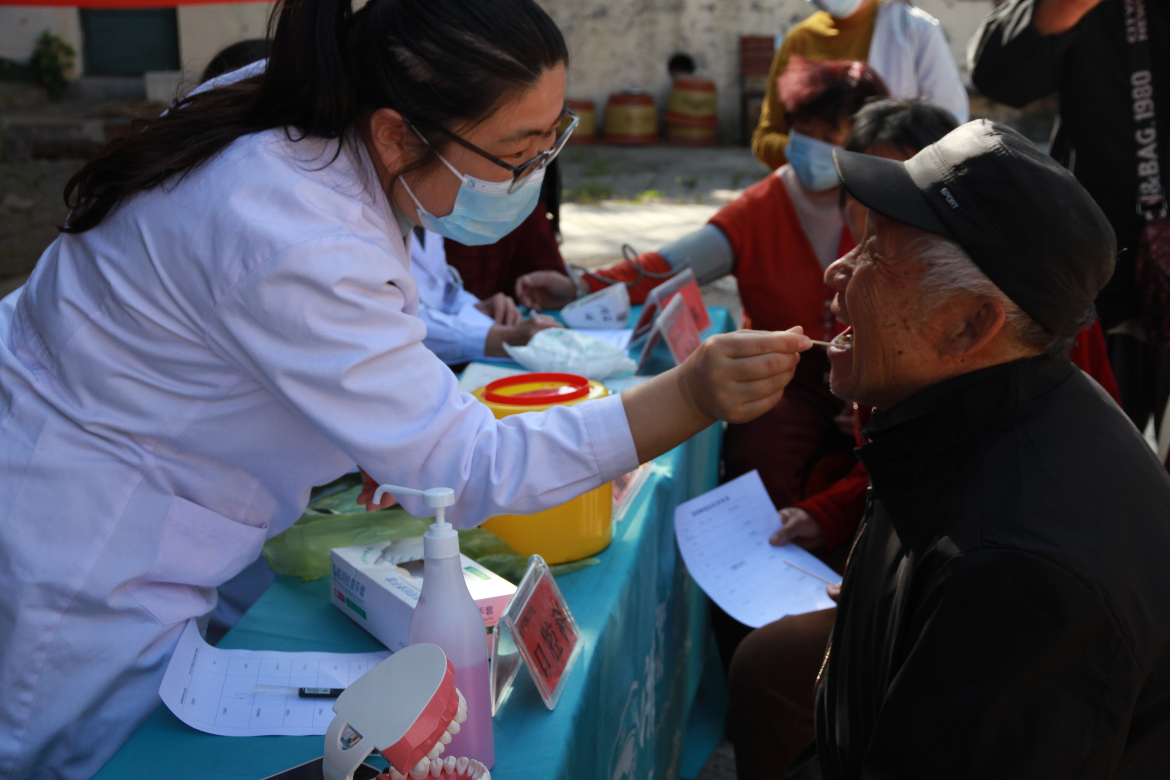 口腔科医生也认真地为村民检查口腔问题。当看到村民常传瑞佩戴的从大集上买的自凝塑料“假牙”时,医生皱了皱眉头,说道:“您佩戴的这不算是假牙,带着容易松动,吃东西也不方便,还可能对口腔造成损伤,还是建议您佩戴量身定制的假牙。”常传瑞听了,若有所思地点点头,嘴里嘟囔着:“原来是这样,那我得考虑考虑。”