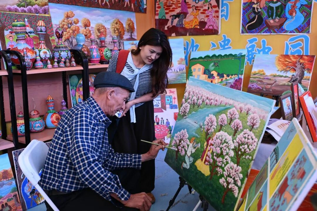 来自麦盖提县的农民画家正在创作。喀什地区融媒体中心 记者曹宇婷 摄