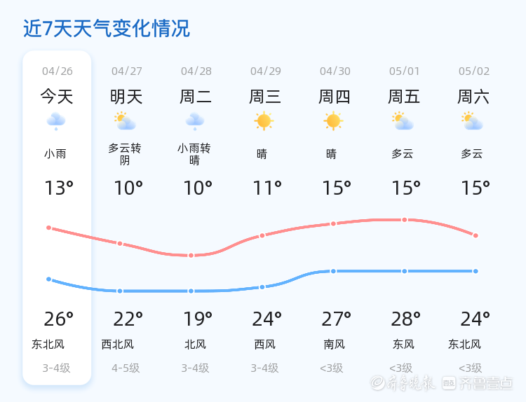 东营今日小雨气温适宜,未来三天天气多变请注意防范