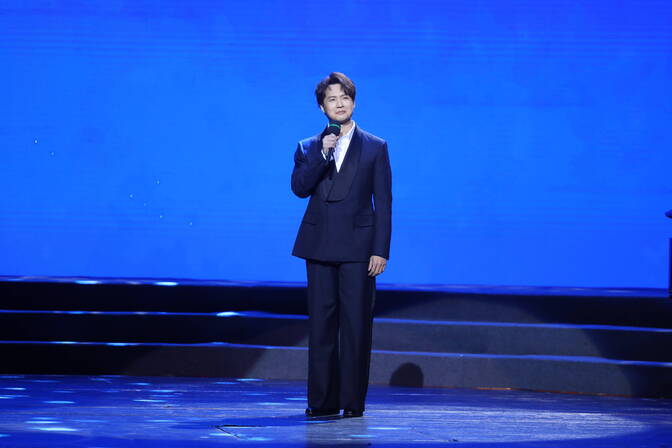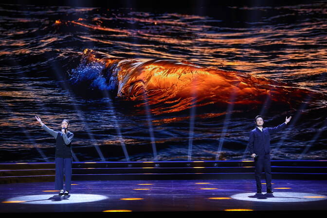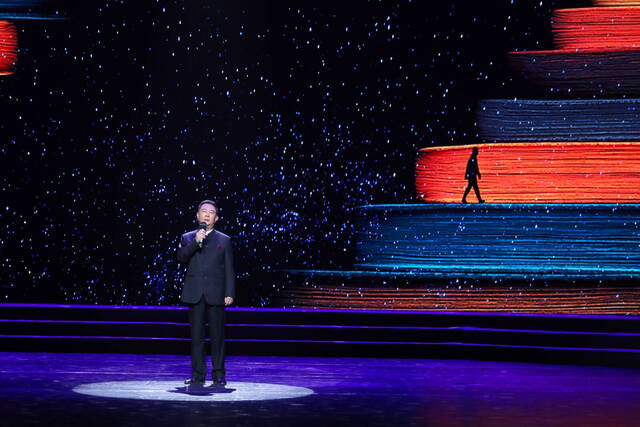 “红军不怕远征难,万水千山只等闲”,这首《七律·长征》一下子把记忆拉回到了90年前那场惊天动地的远征。大屏幕上,雪山、铁索与现场的声浪融为一体,长征精神穿越时空,汇聚成万众一心、勇往直前,而今迈步从头越的磅礴力量。
