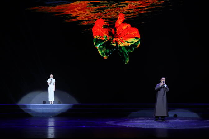 青山不语,沧浪留声。家国情怀的另一重表达,来自致敬“中国核潜艇之父”黄旭华的原创作品《沧浪一生》。上海戏剧学院学生王子安、江海慈倾情演绎黄旭华与母亲跨越三十年的隔空对话,将“对国家的忠,就是对父母最大的孝”诠释得感人至深。这个从“春日共读书市民诵读活动”中脱颖而出的优秀作品,引发了观众深深的共鸣。