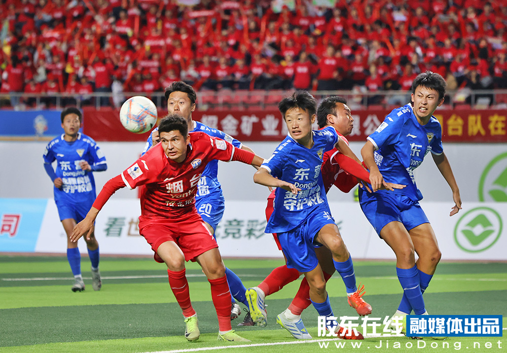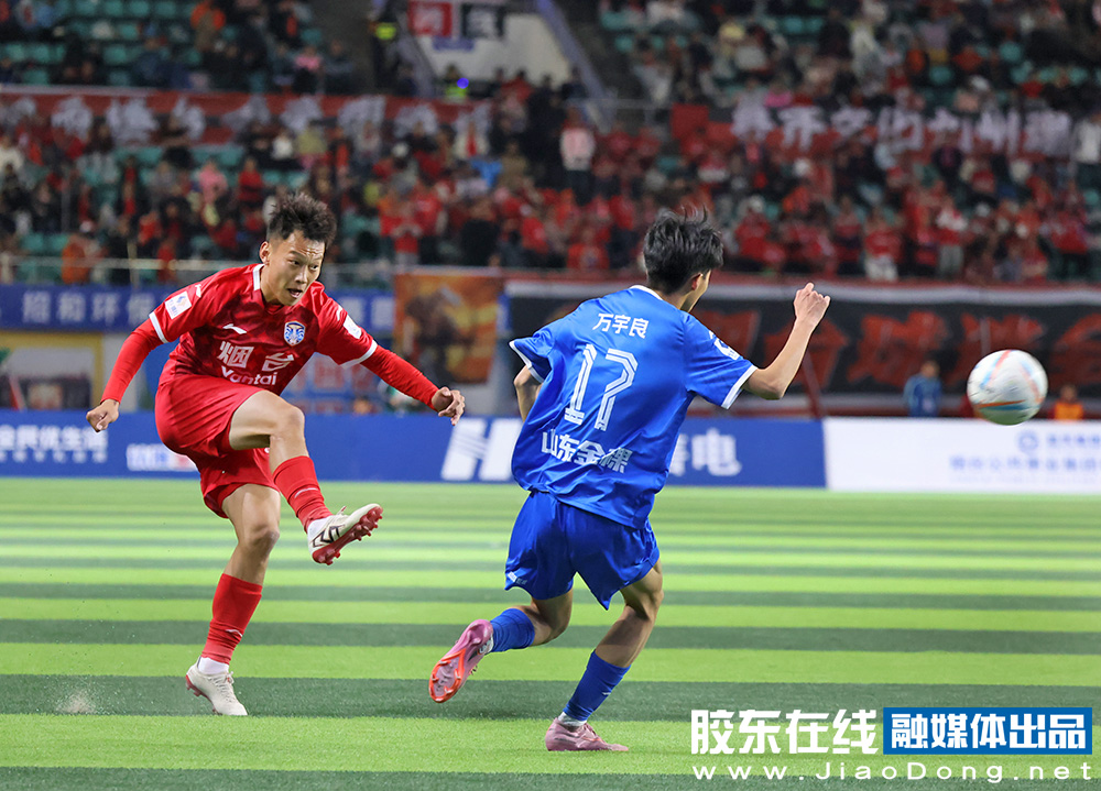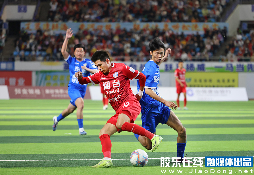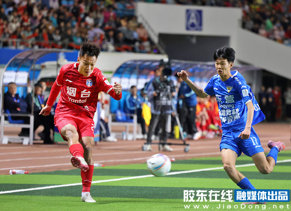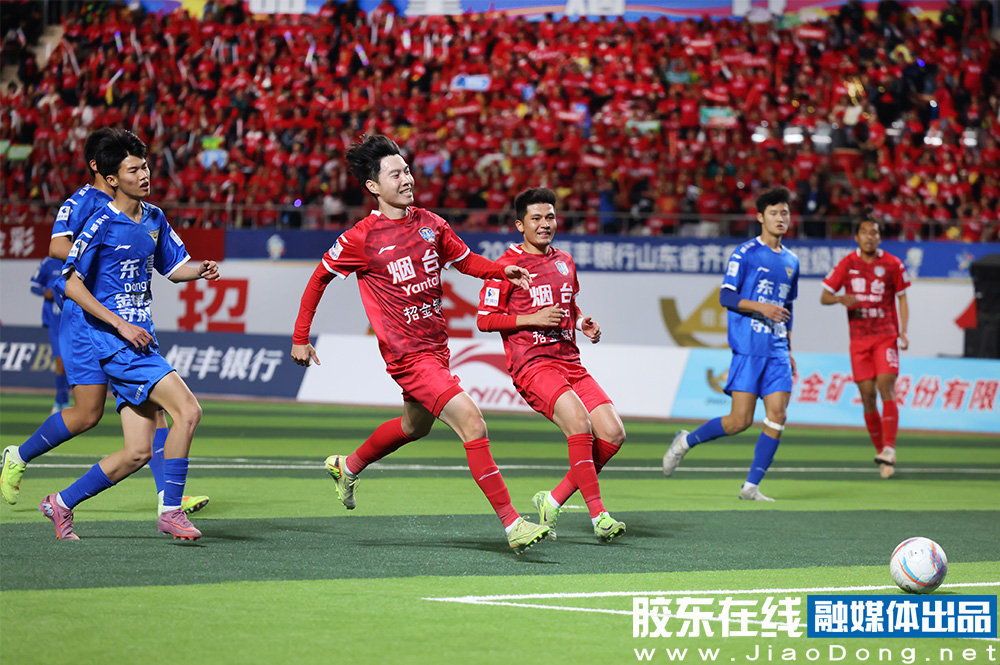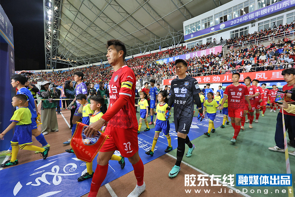 烟台融媒4月26日讯(胶东在线记者李刚摄影报道)4月25日晚,2026年“齐鲁超赛”烟台赛区揭幕战在招远市体育场举行,烟台队主场首战以5:0大比分战胜东营队。