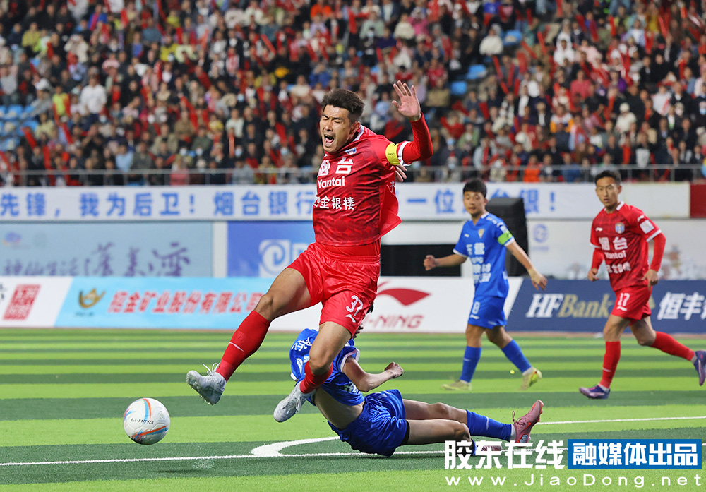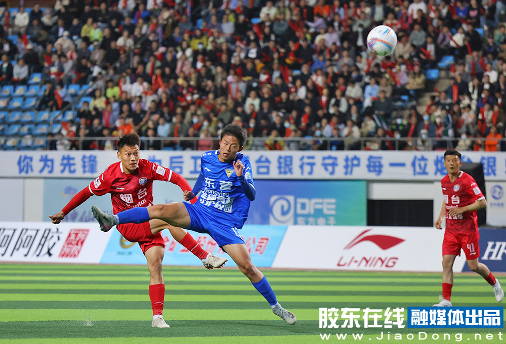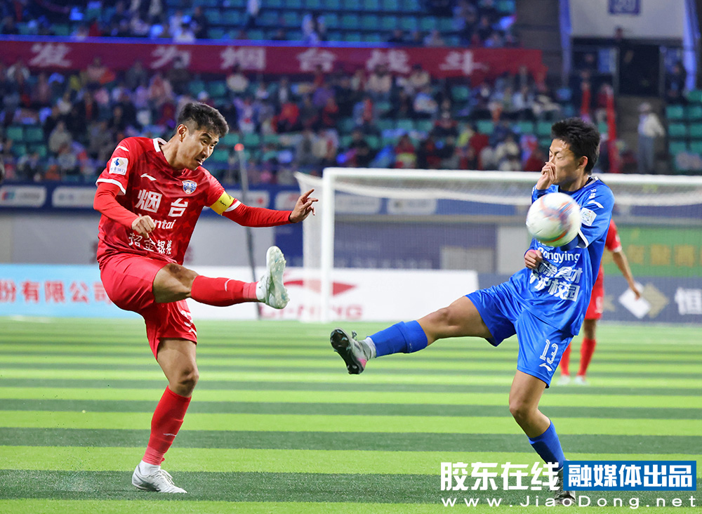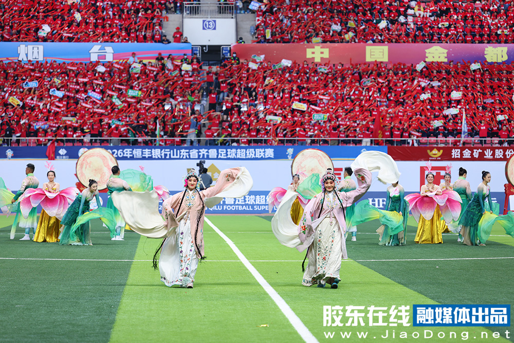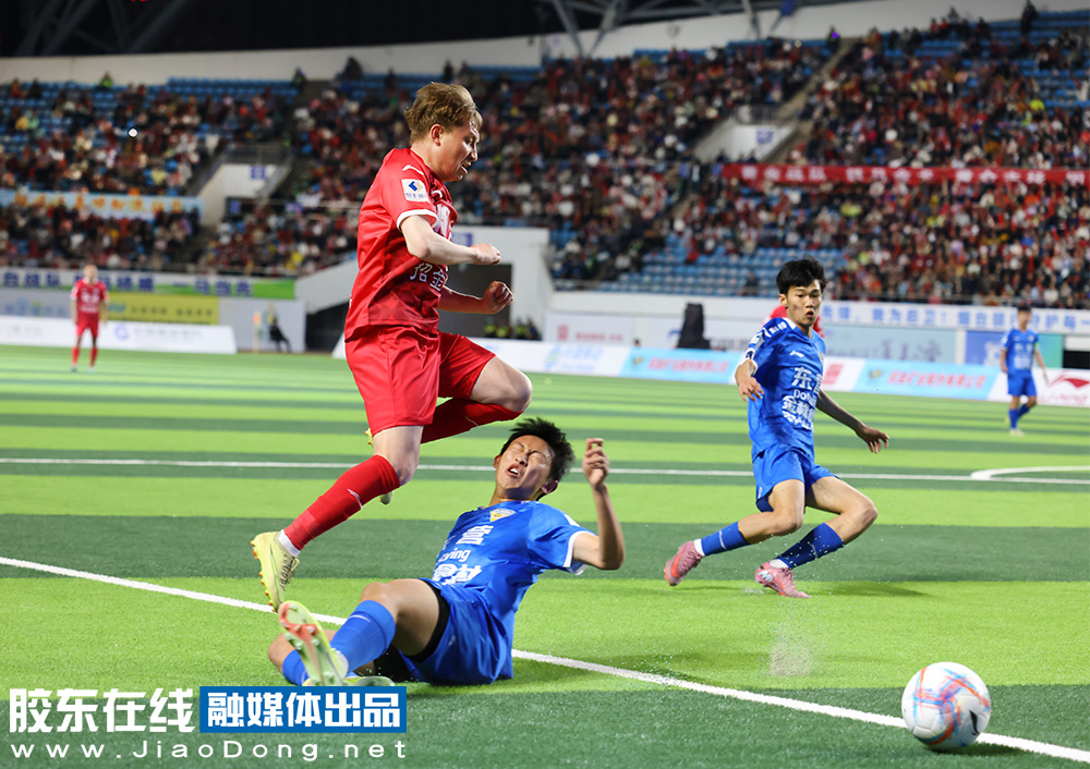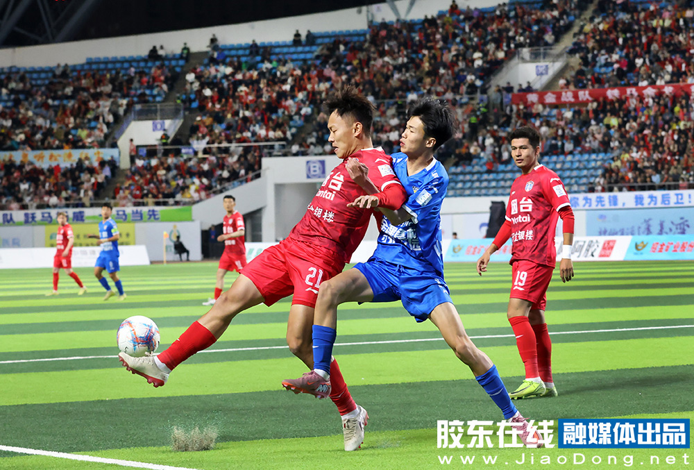 烟台融媒4月26日讯(胶东在线记者李刚摄影报道)4月25日晚,2026年“齐鲁超赛”烟台赛区揭幕战在招远市体育场举行,烟台队主场首战以5:0大比分战胜东营队。