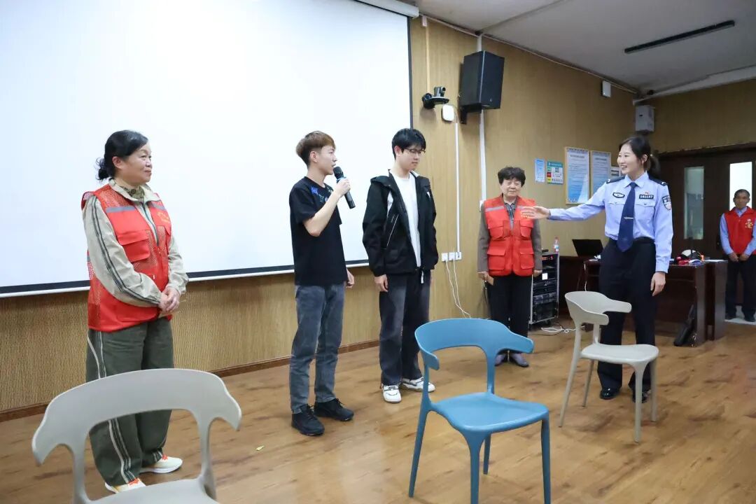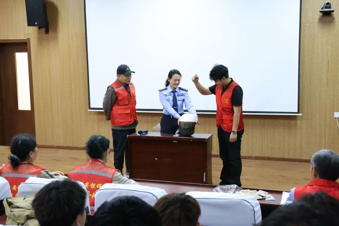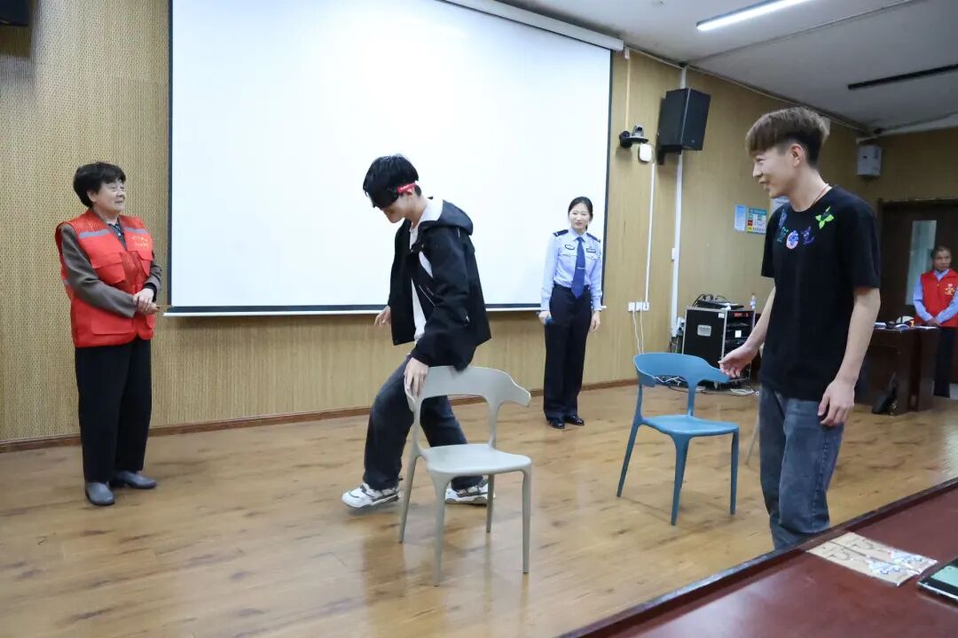 活动中,郭良营围绕交通安全知识进行系统讲解;志愿服务队队员张家魁结合假期参与志愿服务的亲身经历进行分享交流;苑莹通过“砸西瓜”实验并播放警示教育视频,直观展示安全防护的重要性;崔国桐开展“醉酒眼镜”体验实验,让学生切身感受酒后状态对判断和行动能力的影响。