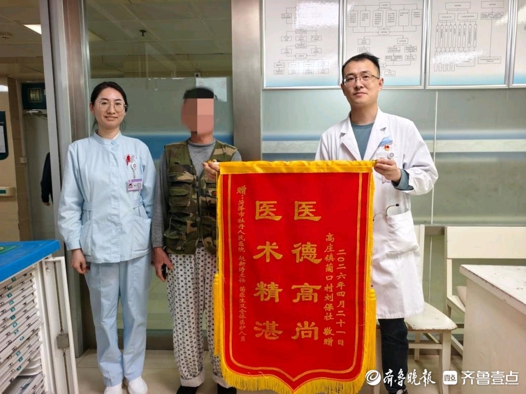 近日,一面写着“医术精湛 医德高尚”的锦旗被送到了菏泽市牡丹人民医院心内科二病区,这是一位康复患者对病区副主任赵新涛及其医护团队最诚挚的感谢。小小的锦旗,承载着患者满满的感激,也见证了医患之间温暖的情谊。