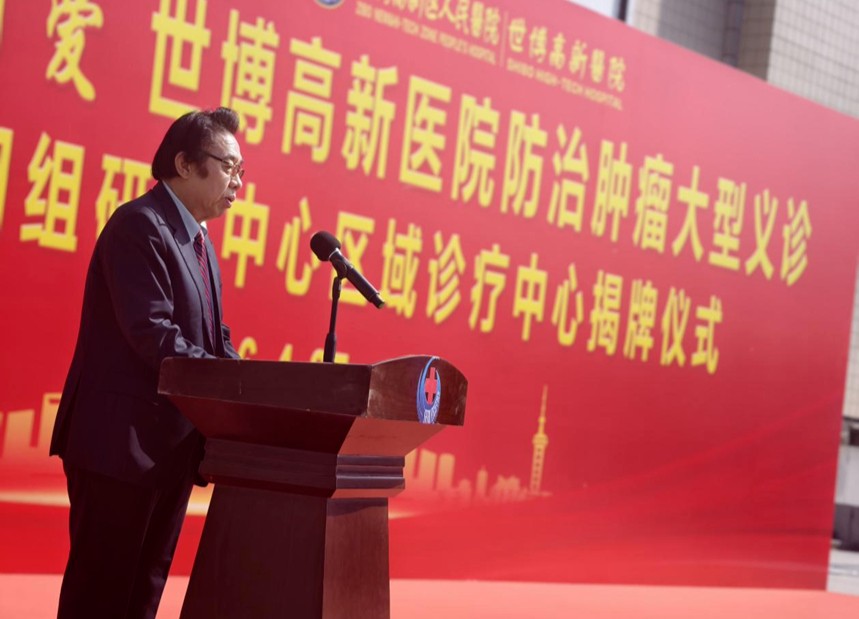 4月25日,“大医传承·世博有爱”世博高新医院肿瘤防治大型义诊暨国家人类基因组研究中心区域诊疗中心揭牌仪式在淄博市博物馆广场举行。包括中联部原副部长、全国人大外事委员会副主任委员马文普,天坛基因董事长、诺赛生物独立董事、国家人类基因组联合实验室副主任刘文强,淄博高新区卫生健康事业中心党组成员、副主任殷世松,北京世博金都医药科技发展有限公司董事长兼总裁、世博高新医院创始院长阎敬武等在内的多位领导和嘉宾出席此次活动。