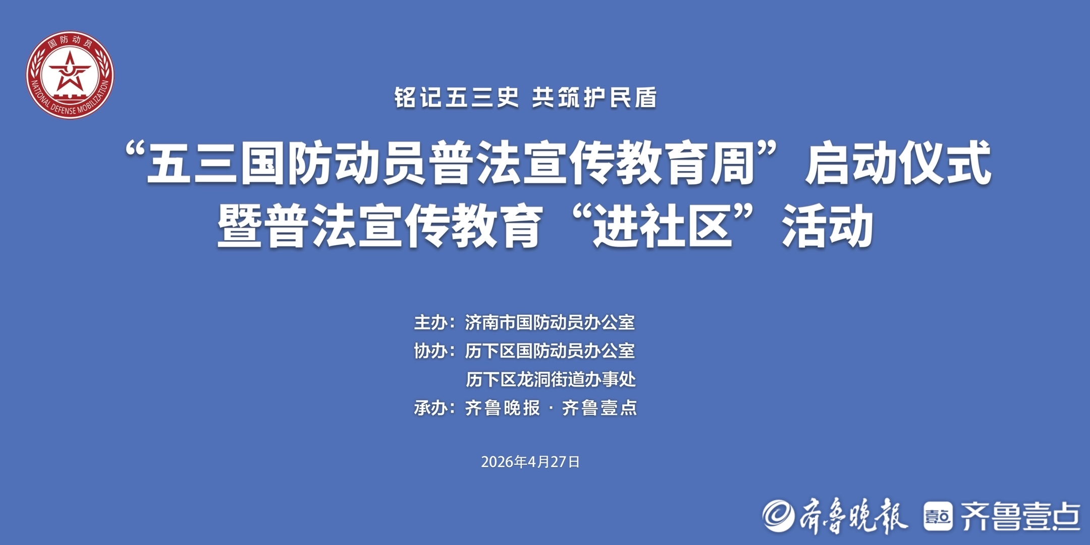 本次活动由济南市国防动员办公室主办,齐鲁晚报·齐鲁壹点承办,历下区国防动员办公室、历下区龙洞街道办事处协办。该活动旨在普及国防动员知识,增强人民群众国防意识和国防素养,营造关心国防、热爱国防、建设国防、保卫国防的浓厚氛围。
