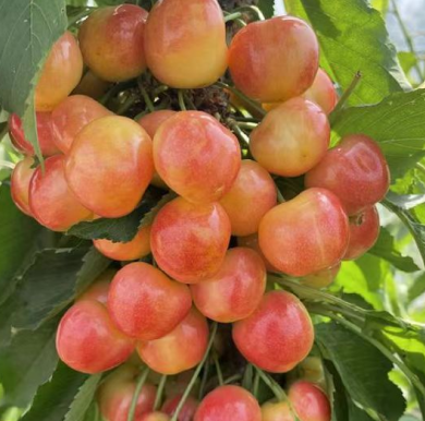 相对于普通樱桃,鲁樱5号生长势强,树姿开张,成花易、丰产性突出,苗木定植后第3年即可见果。果形周正、黄红透亮,平均单果(小的12-13,大的17-18)。肉脆多汁、风味浓郁,可溶性固形物可达18%,口感超过普通红樱桃。最关键的是它皮厚肉硬、超耐储运,一举打破黄樱桃 “好吃运不远” 的痛点。