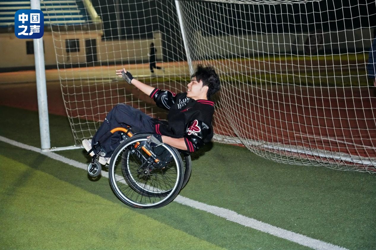 “那个球飞过来速度特别快,我当时就赶紧扑,从轮椅上扑下去,把球抱住了。我守住门的那一刻大家都特别高兴,就过来把我举起来了。”