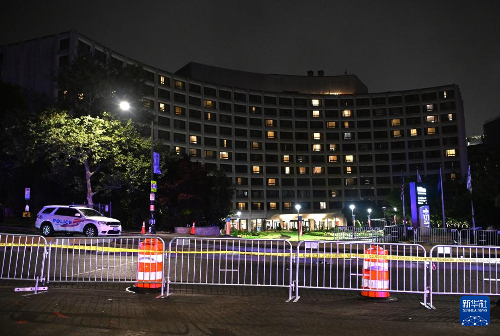 25日,举行白宫记者协会晚宴的美国华盛顿希尔顿酒店前拉起路障。