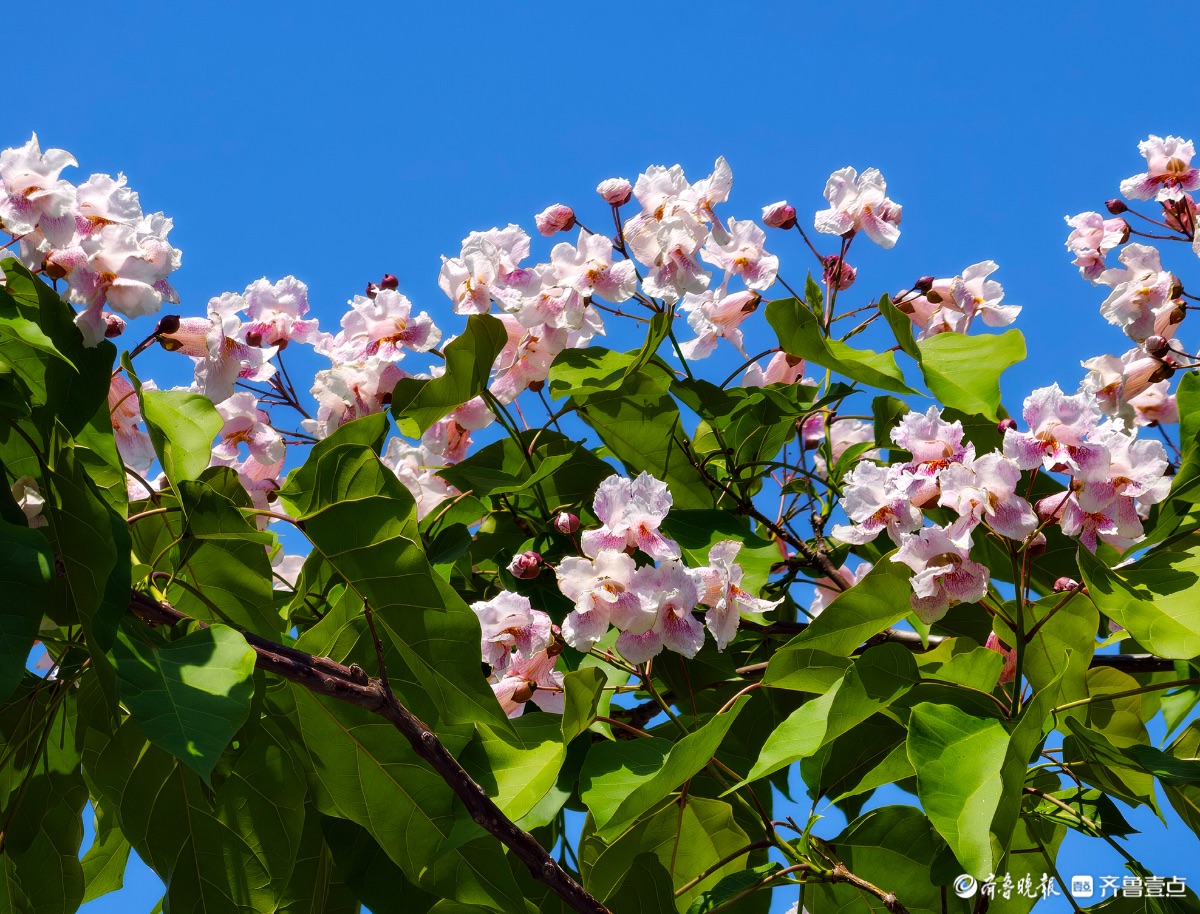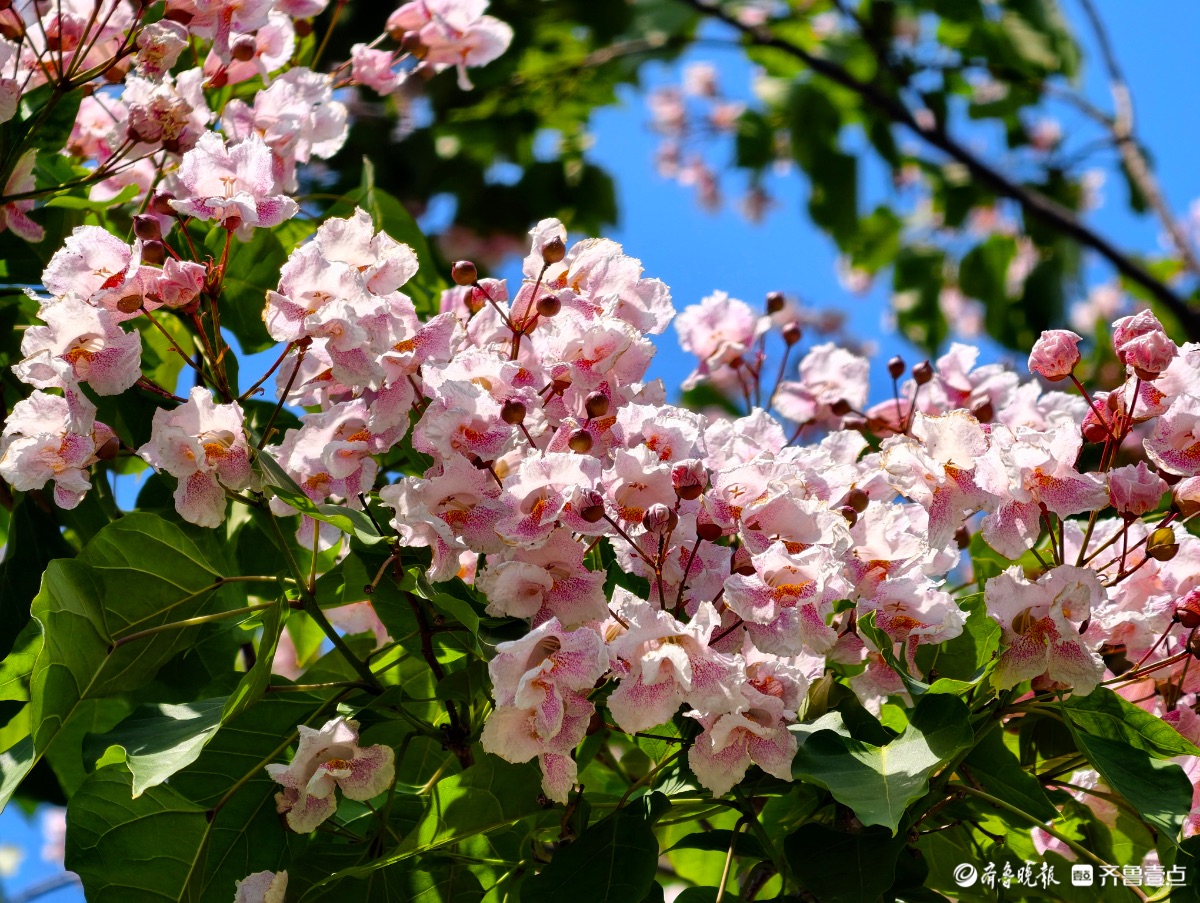 粉色“木王”花开,一道靓丽风景线摄影 | 2026-04-26 16:16:55 微信扫码扫码下载客户端4月24日,在临沂沂河岸边的滨河生态公园中,被誉为“木王”的楸树,树冠枝头绽放着淡红色的花朵,既美丽又壮观,构成了一道道靓丽的风景线。 高军 摄责任编辑:王媛